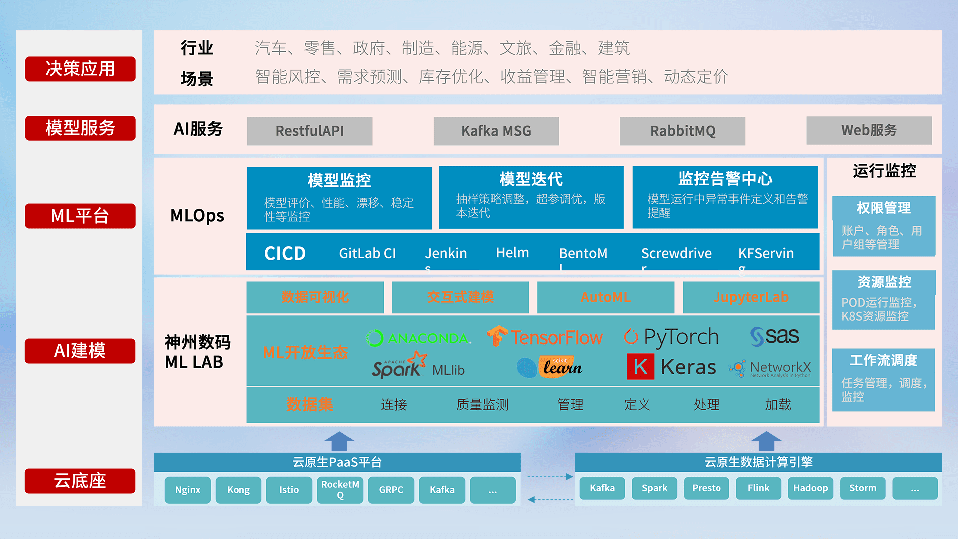 数据+模型双引擎驱动,,,面向智能服务场景,,快速灵活利用AI技术,,,,支持业务决策,,,助力企业智能化转型破局。。